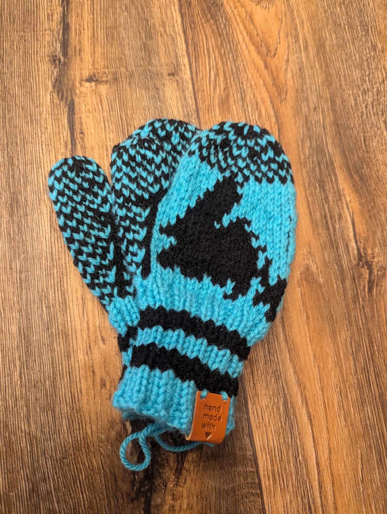 Super cute handmade mittens with map of Newfoundland knitted into them.