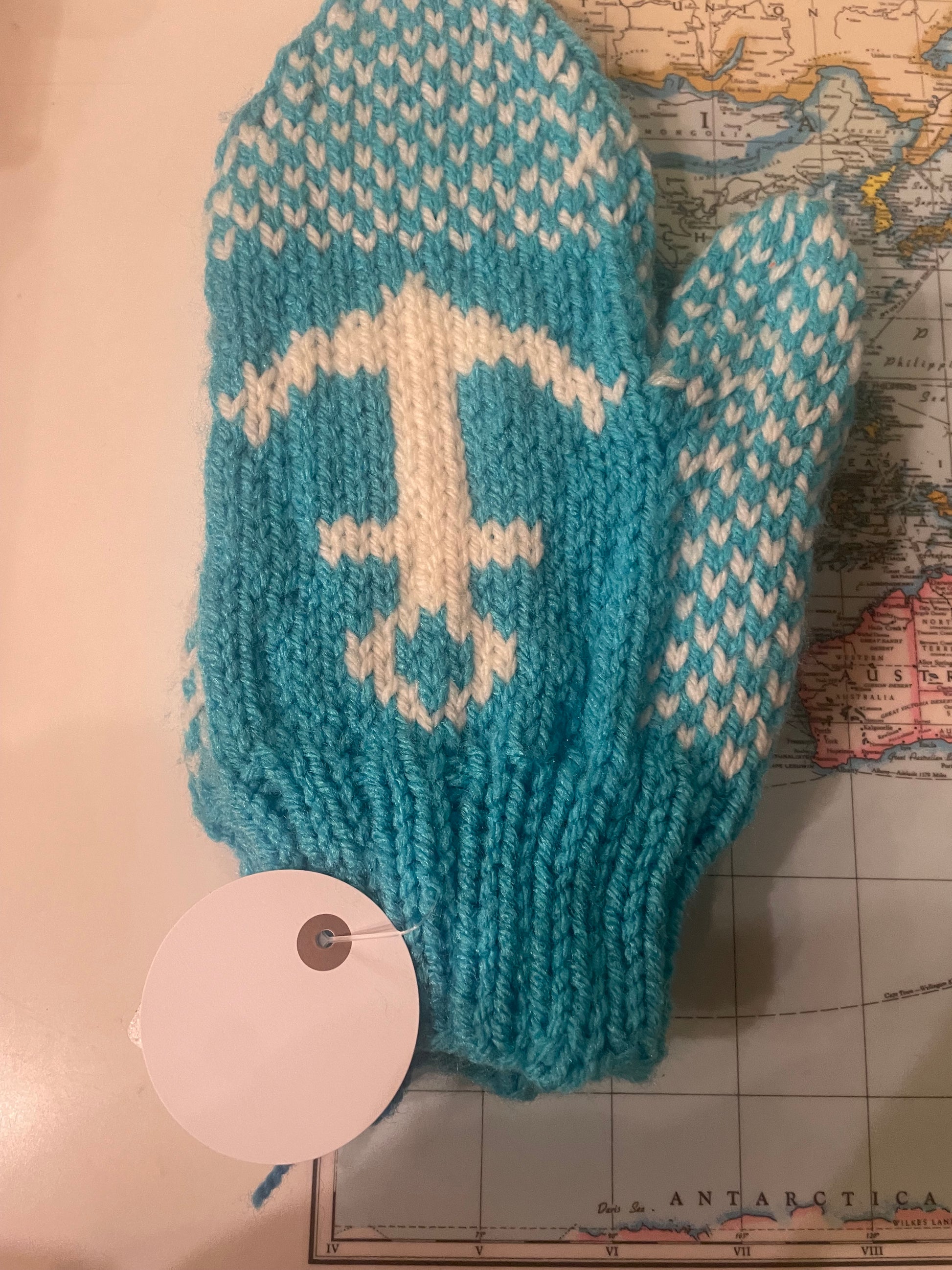 Knitted Handmade Anchor Ladies Mittens- Blue/Cream