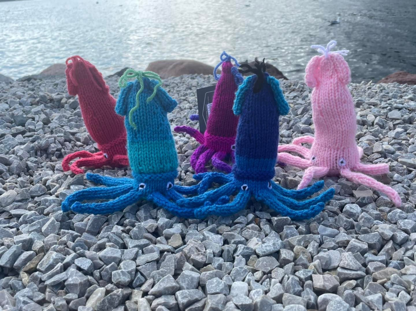 These super cute toys are hand knit to resemble a Newfoundland Squid!